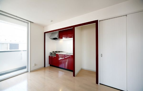 赤のアクセントがとってもオシャレなキッチン![]()